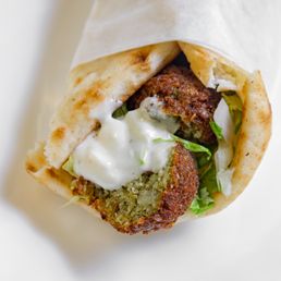 It is a green cart and I've been here a few times. I've come during the week for lunch and it is great that I never have to wait too long. The food here is simple and delicious. I usually get a platter over rice and really enjoy that they marinate cubed white meat chicken and lamb. I think the quality and price are great. The platter comes with a little salad, really just lettuce, and homemade homemade tzatziki sauce and jalapeño sauce. The jalapeño sauce is very spicy, but I always ask for a little because it is nice and acidic. If you get a combo, you get a few pieces of falafel. The falafel is a little dry and could be crispier. I would definitely recommend getting extra veggies on the side to make it a more complete meal. I believe there are 2 different people that working at this cart and was drawn by the different articles and photos of famous chefs, like Bobby Flay, that were posted on the cart. One of the guys that works in the cart is very enthusiastic and super nice. The other guy is straightforward, but not curt. I like that the food is served very quickly and can quickly walk back to my office if needed.